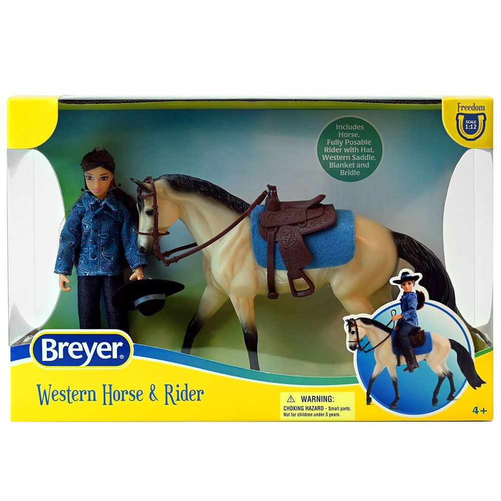 Finely detailed horse with western saddle and lady rider to add to your Breyer® collection