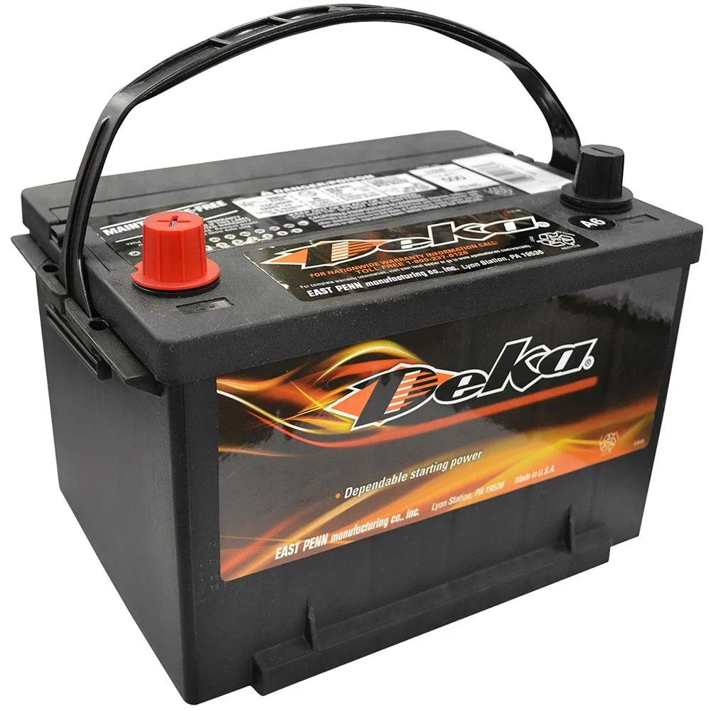 Visit one of our retail locations to view our selection of Deka batteries. This Deka auto battery measures 10 inches long x 7-1/4 inches wide x 7 inches tall. Its Power-Perform™ Plates help to prevent electrical shorts from happening and enhances the overall power. The exterior features an impact resistant flush cover which offers easier maintenance, better performance and a safer battery. This automotive battery has an ultra-pure demineralization system that allows filtered water to remain filled at precise levels. A handle is also included with this battery for easy transportation and installment.