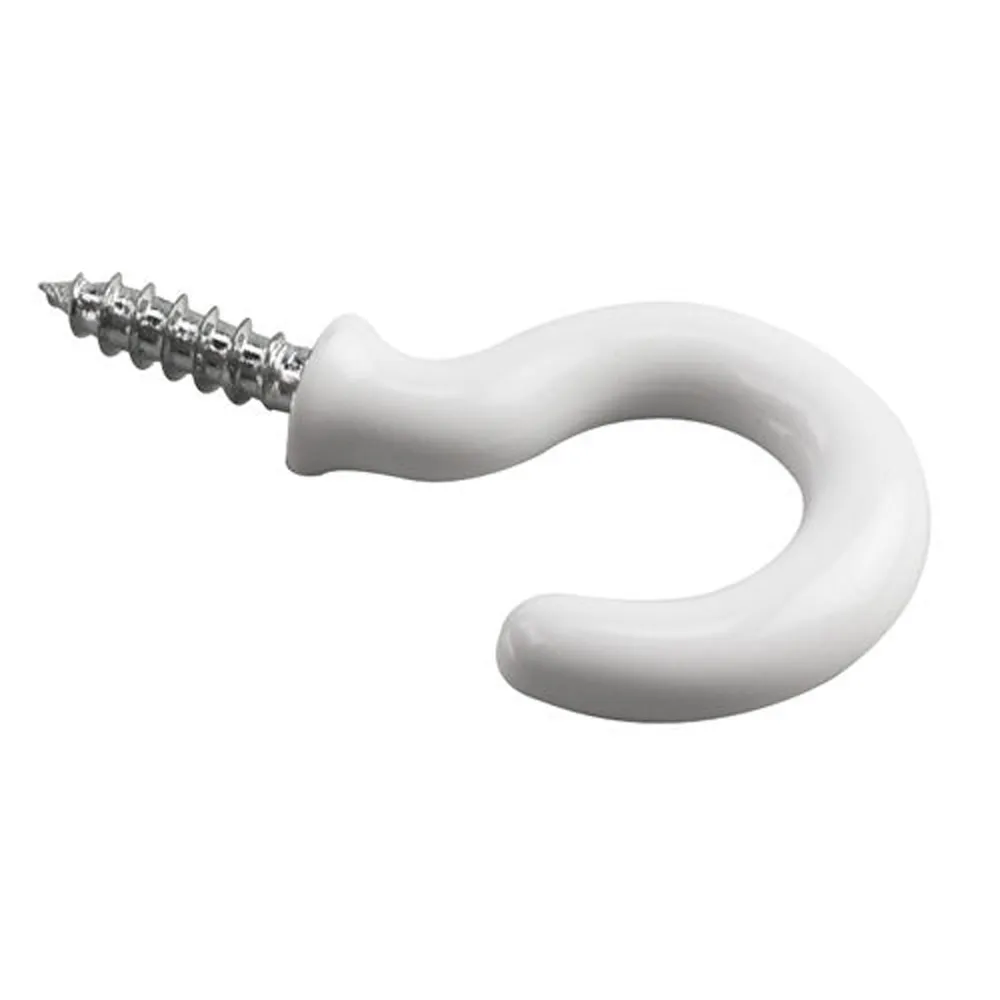 Get started on your kitchen organization with this cup hook. Screw-in hook with base for hanging cups or other various kitchen items. Ideal for indoor use, and is available in a variety of sizes.
