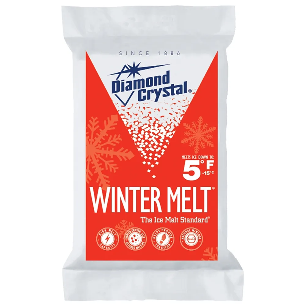 Keep your sidewalks and driveways safe to walk on with Diamond Crystal® Winter Melt® ice melter. Made of a combined mix of large and small sodium chloride crystals, this ice melter provides a quick melting and long lasting melt. Simply spread the crystals across the pavement, and when melted, shovel up the remaining slush.