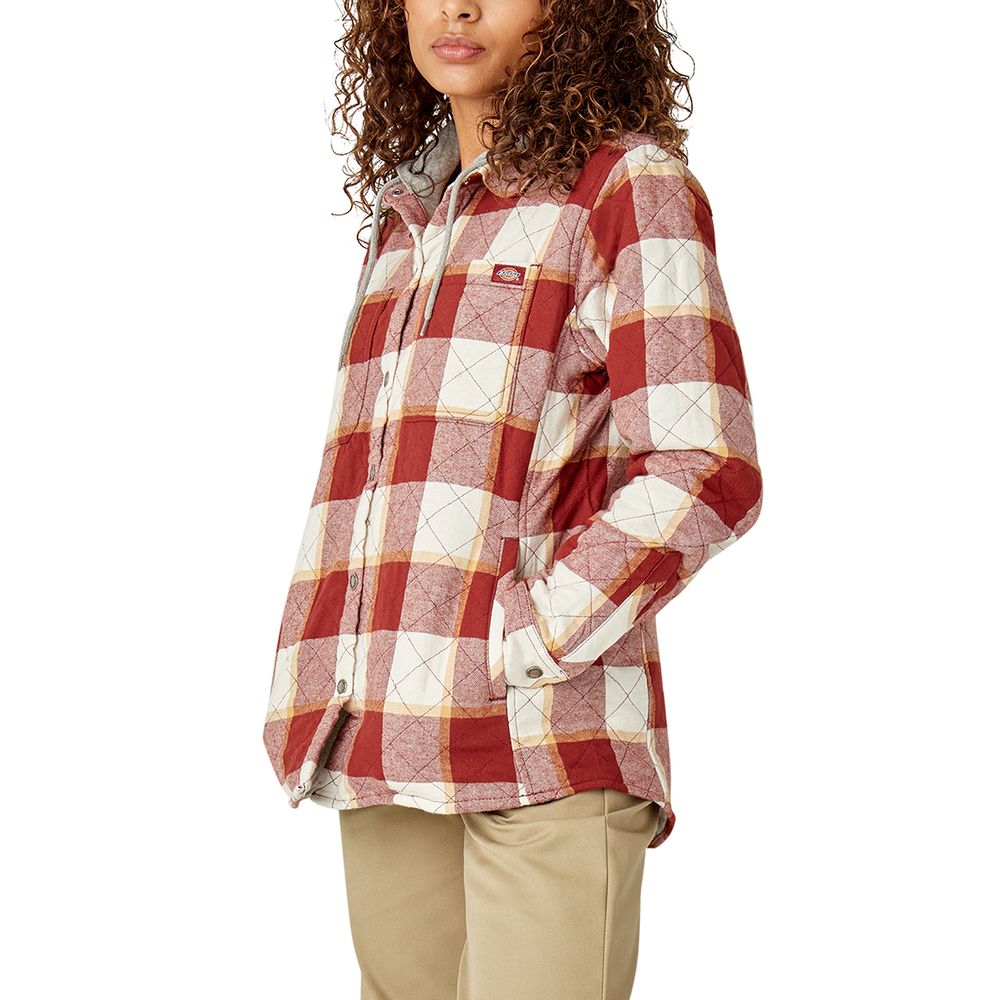 This soft flannel hooded shirt jacket features a jersey lining and hood and has two welt pockets for maximum storage. This shirt jacket is durable and repels water and is made from 100% cotton brushed flannel and quilted with 2 oz. polyester fill.
