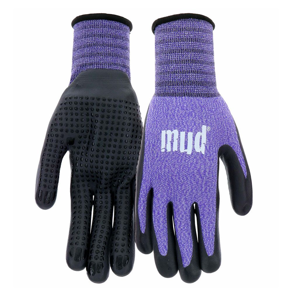This pair of Mud® knit gloves feature nitrile-coated palms and fingers for increased durability and protection. Flexible material provides a comfortable fit for increased dexterity.