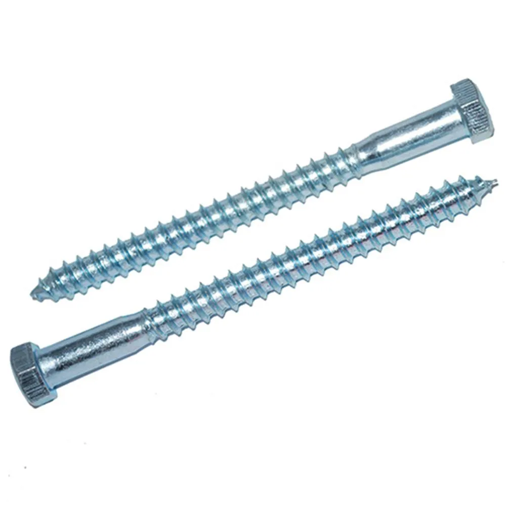 Lag screws are extremely sturdy fasteners usually used to connect heavy lumber or other heavy materials. Unlike standard wood screws, these lags require a pilot hole drilled to aid in installation.